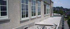 Ausführung mit historischem Kalk-Grundputz und mineralischem Kalk-Kellenwurf und Kalk-Wormserputz.