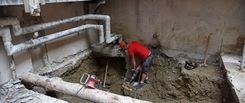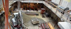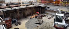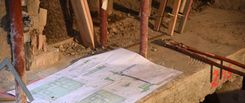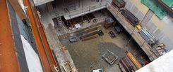Nach dem Erstellen der neuen Kanalisationsgrundleitungen, der neuen Betonbodenplatte und der zwei Liftunterfahrten wird das Altstadthaus Geschoss um Geschoss neu aufgebaut.